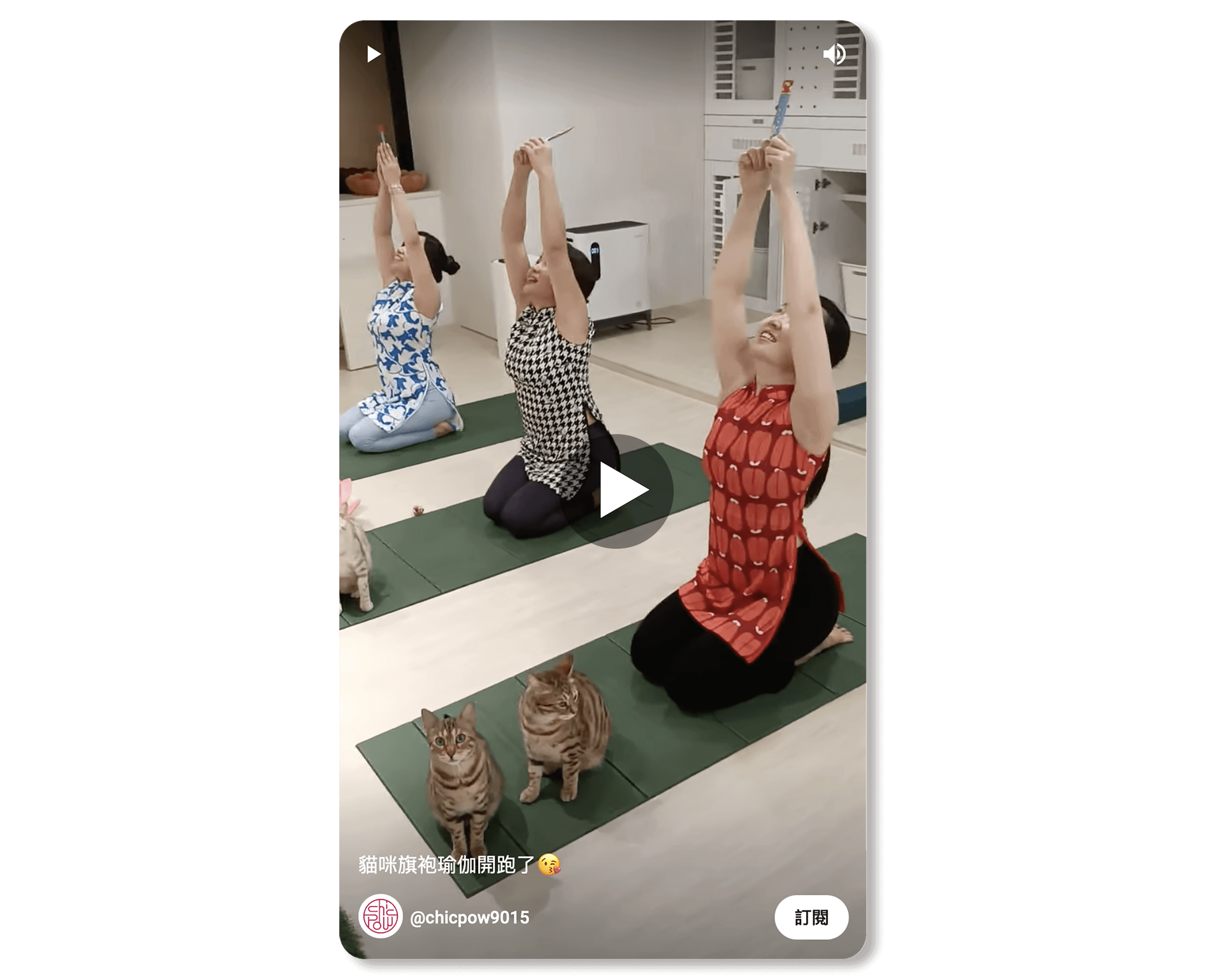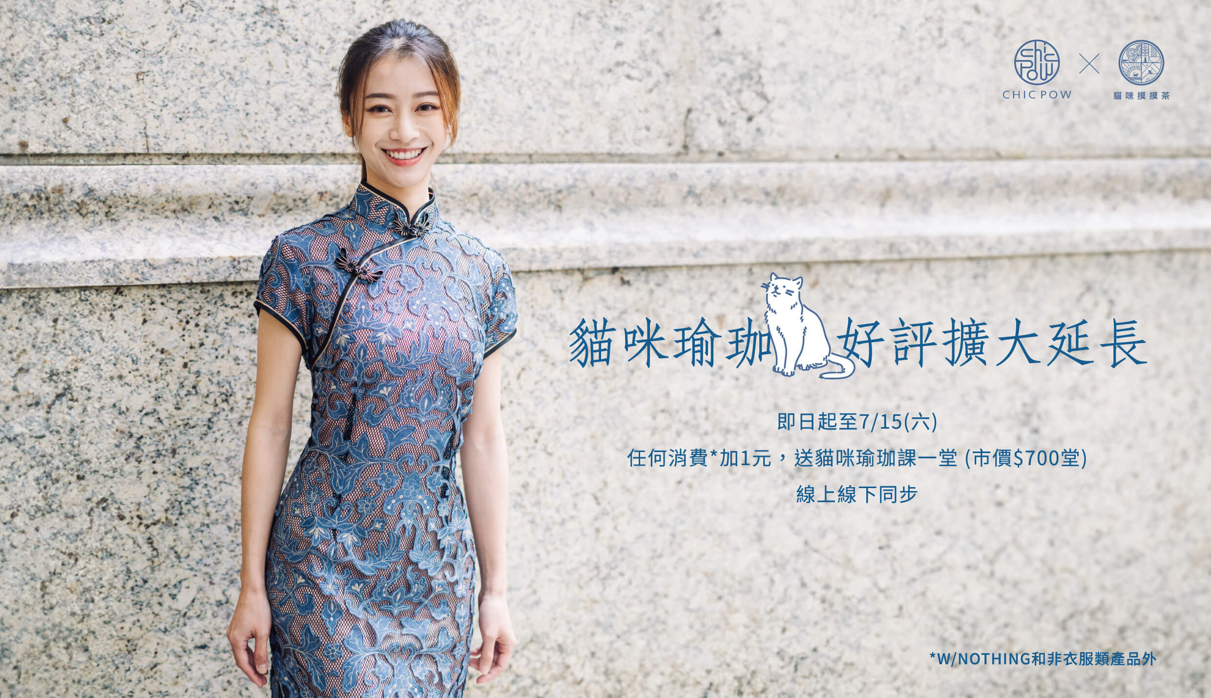 「旗袍瑜珈」由 CHICPOW 和 貓咪摸摸茶 合作,